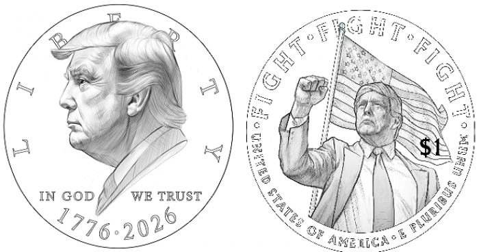 سمح القانون ببدء سك هذه العملات خلال فترة عام تبدأ من يناير 2026. تعرض المسودات الأولية تصميمًا للوجهين؛ الوجه الأول يحمل صورة جانبية لترامب، والوجه الثاني يظهر الرئيس رافعًا قبضته أمام العلم الأمريكي، مع عبارة "قاتل، قاتل، قاتل".