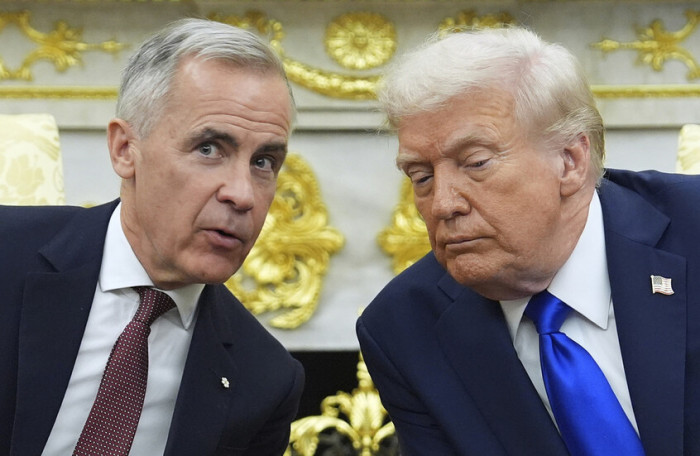 وشهد لقاء ترامب وكارني جوًا وديًا ولحظات من الضحك خصوصًا لدى حديث ترامب من باب المزاح عن "اندماج" لكندا مع الولايات المتحدة.