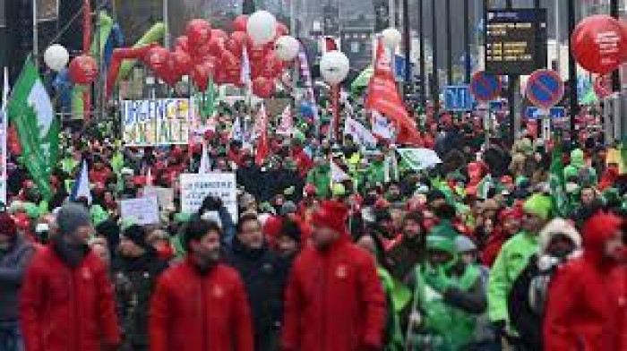 نزل عشرات الآلاف إلى شوارع بروكسل اليوم الثلاثاء احتجاجا على خطط التقشف الحكومية، في إطار إضراب وطني أدى إلى توقف الرحلات الجوية وتعطيل المواصلات العامة.