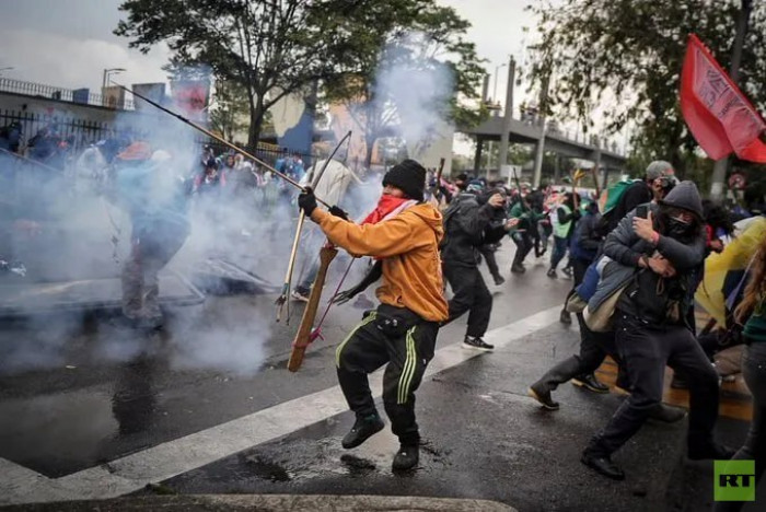 هاجم متظاهرون كولومبيون اليوم السبت، السفارة الأمريكية في بوغوتا بالأقواس والسهام، بالإضافة إلى متفجرات ومواد حارقة، ما أسفر عن إصابة أربعة من رجال الشرطة.