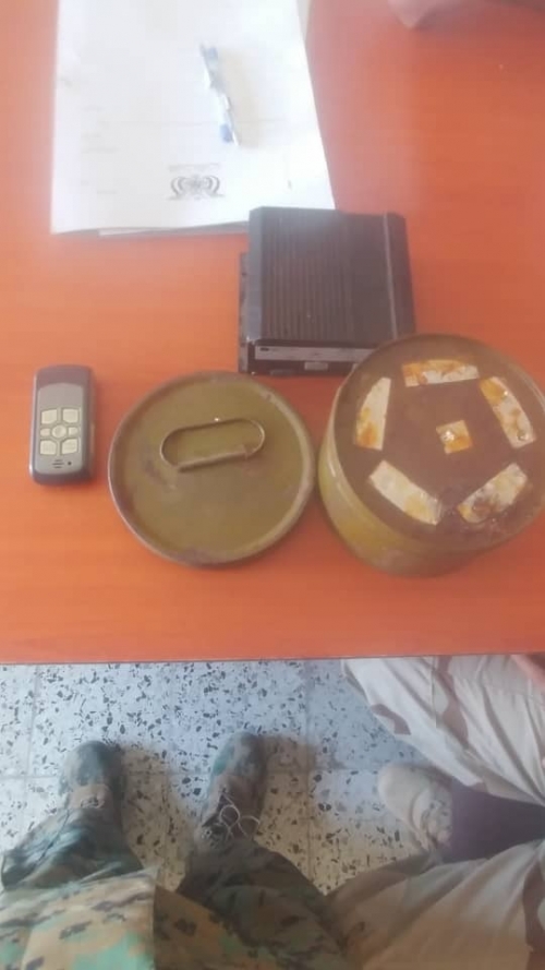 وعثر أفراد النقطة التابعة لقوات الحزام الأمني مع المتهمين على علبة TNT مخبأة خلف الكراسي، وجهاز تحكم عن بعد، وقطعة سلاح، إضافة لعدد كبير من مقاطع الفيديو تحتوي على مشاهد لعمليات إرهابية نفذتها تنظيمات إرهابية مثل القاعدة وداعش.