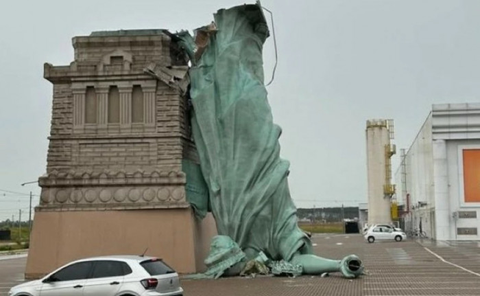 شهدت مدينة هافان في ولاية ريو غراندي دو سول بجنوب البرازيل اليوم الثلاثاء، اجتياح عاصفة عنيفة مسببة انهيار نسخة طبق الأصل من تمثال الحرية، يبلغ ارتفاعها 24 مترًا، أمام أحد متاجر سلسلة هافان.