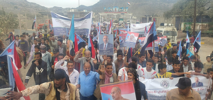 وأكدت اندماج مختلف شرائح المجتمع في الحراك السلمي المنظم الذي يدعم مسارات العمل السياسي والعسكري للمجلس الانتقالي الجنوبي، كما خرج المعتصمين بمسيرة كبيرة جابت شوارع مدينة حبيل جباري والمطار.