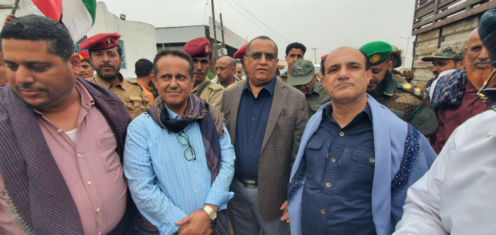وتقدم الدكتور عبدالناصر الخبجي، رئيس الهيئة السياسية بالمجلس الانتقالي الجنوبي، الموكب الشعبي.