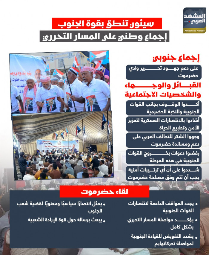 سيئون تنطق بقوة الجنوب.. إجماع وطني على المسار التحرري (إنفوجراف)