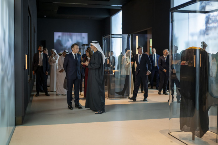زار إيمانويل ماكرون، رئيس الجمهورية الفرنسية، متحف زايد الوطني في المنطقة الثقافية بجزيرة السعديات، يرافقه الشيخ خالد بن محمد بن زايد آل نهيان، ولي عهد أبوظبي رئيس المجلس التنفيذي لإمارة أبوظبي.