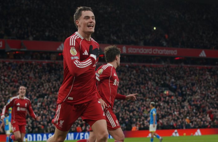وافتتح الهولندي ريان غرافينبيرخ، التسجيل لـ"الريدز" في الدقيقة 41، قبل أن يضاعف زميله الألماني فلوريان فيرتز النتيجة بعد دقيقة واحدة فقط، مسجلاً هدفه الأول في الدوري الإنجليزي منذ انضمامه إلى ليفربول قادماً من باير ليفركوزن في صفقة ضخمة خلال فترة الانتقالات الصيفية الماضية.