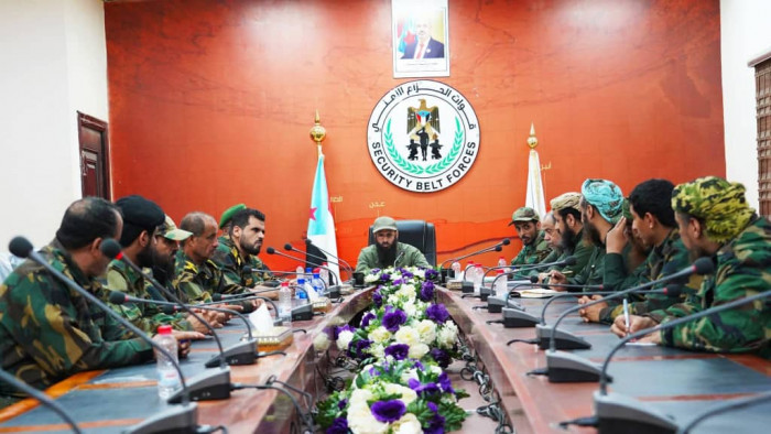 بحث العميد محسن الوالي، القائد العام لقوات الحزام الأمني، اليوم الثلاثاء، خلال اجتماع في مقر القيادة العامة بمعسكر الشعب، تعزيز الأداء ورفع وتيرة العمل الأمني.
