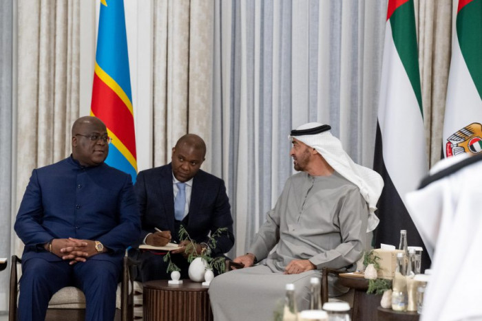 وخلال اللقاء الذي جرى في قصر الشاطئ في أبوظبي، رحب رئيس دولة الإمارات، بفيليكس تشيسيكيدي، الذي يقوم بزيارة عمل إلى الدولة، مؤكداً أن العلاقات بين دولة الإمارات وجمهورية الكونغو الديموقراطية شهدت تطوراً متواصلاً خلال السنوات الماضية خاصة في المجالات الاقتصادية والاستثمارية والتجارية.