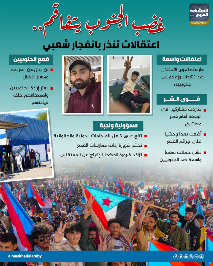 غضب الجنوب يتفاقم.. اعتقالات تنذر بانفجار شعبي (إنفوجراف)