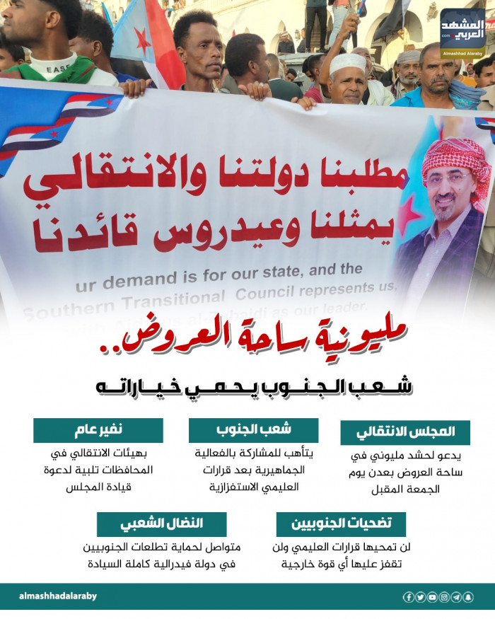 مليونية ساحة العروض.. شعب الجنوب يحمي خياراته (إنفوجراف)