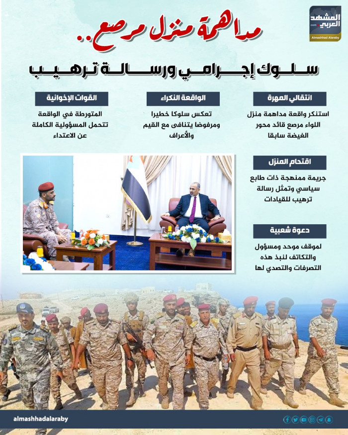 استنكرت القيادة المحلية للمجلس الانتقالي الجنوبي في المهرة، واقعة مداهمة منزل اللواء مرصع قائد محور الغيضة سابقا.
