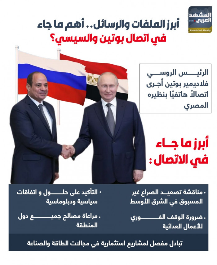 أبرز الملفات والرسائل.. أهم ما جاء في اتصال بوتين والسيسي؟ (إنفوجراف)
