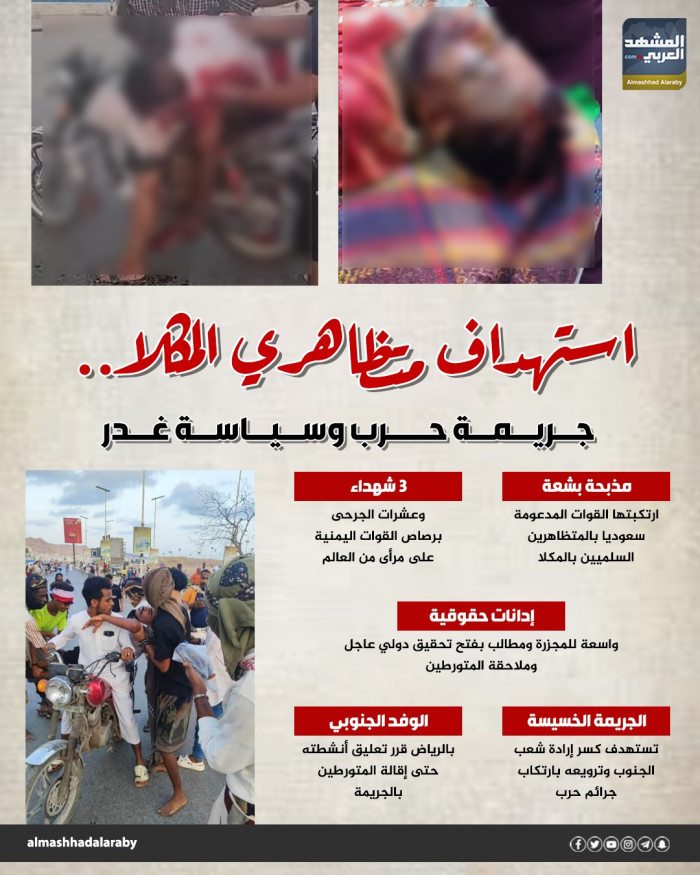 استهداف متظاهري المكلا.. جريمة حرب وسياسة غدر (إنفوجراف)