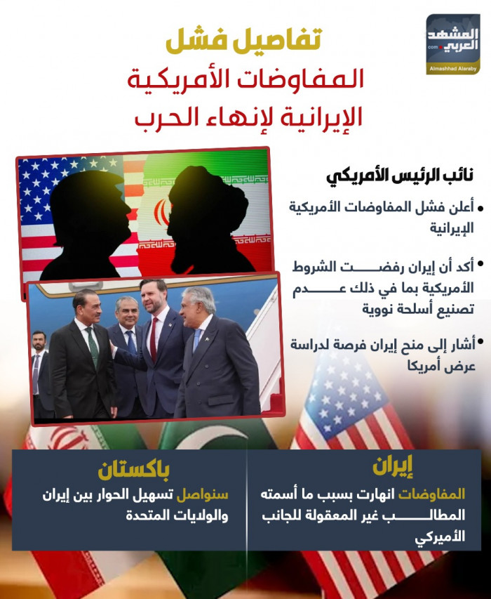 تفاصيل فشل المفاوضات الأمريكية الإيرانية لإنهاء الحرب (إنفوجراف)