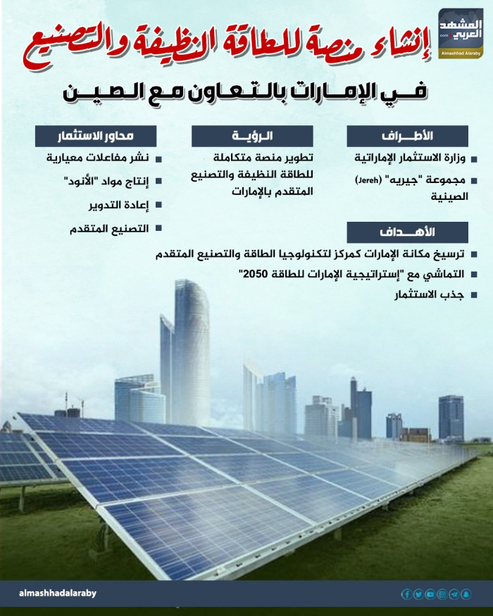 إنشاء منصة للطاقة النظيفة والتصنيع في الإمارات بالتعاون مع الصين (إنفوجراف)