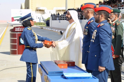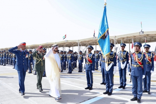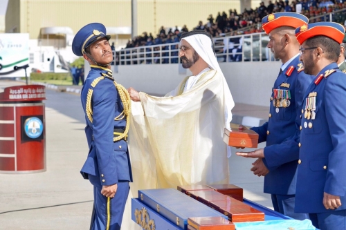 ورعى الشيخ محمد بن راشد آل مكتوم، احتفال القوات المسلحة بتخريج دفعة جديدة من المرشحين الطيارين في كلية خليفة بن زايد الجوية في مدينة العين صباح اليوم.