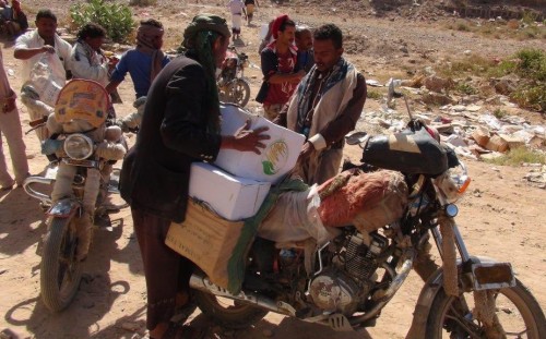 وقال المركز عبر حسابه على "تويتر"، في تغريدة رصدها "المشهد العربي": "استمرار توزيع المساعدات الغذائية على النازحين والمتضررين في حجة و الضالع.
