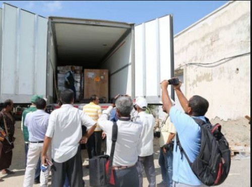 وتضمنت الشحنة 13 شاحنة منها 11 تحتوي على 189 طناً من مواد الغسيل الكلوي والتي سيتم توزيعها بحسب خطة التوزيع بالبرنامج الوطني للإمداد الدوائي لمراكز الغسيل الكلوي في محافظات عدن والحديدة وتعز وشبوة، فيما تحمل شاحنتين أدوية ومستلزمات طبية لمستشفی الثورة العام بمحافظة تعز.