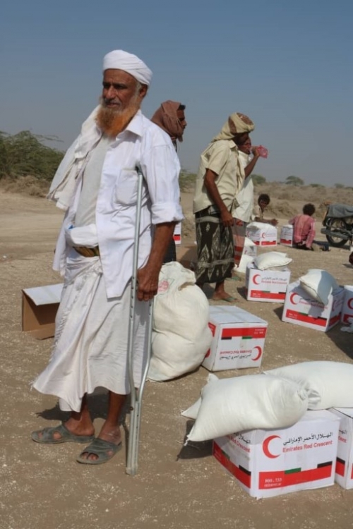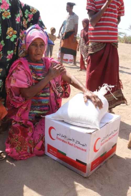 الهلال الإماراتي يوزع 120 طناً من المواد الغذائية في الحديدة (صور)
