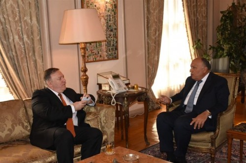 استقبل وزير الخارجية المصري، سامح شكري، اليوم الخميس، نظيره الأمريكي، مايك بومبيو، في مقر وزارة الخارجية المصرية، وذلك عقب لقاء الأخير بالرئيس عبد الفتاح السيسي.