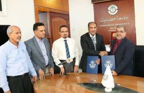 وقع محمد سعيد خنبش رئيس جامعة حضرموت، ومحمد عاشور الكثيري رئيس جامعة سيئون مذكرة تفاهم مشترك بين جامعتي حضرموت وسيئون.