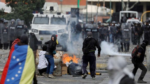 طالب وزير الخارجية الفرنسي، جان إيف لودريان، الرئيس الفنزويلي، نيكولاس مادورو، بالامتناع عن استخدام القوة ضد المعارضة في بلاده.