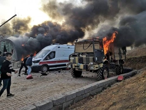 وأضافت المصادر، أن “المتظاهرين اقتحموا ثكنة عسكرية للقوات التركية في ناحية شيلادزى بدهوك، بعد سيطرتهم على الموقع”، مبينًا أن “المتظاهرين يسيطرون حاليًا على المقر العسكري التركي، كما قاموا بإحراق بعض الآليات والمواد للجيش التركي، وسط أنباء عن وجود إصابات بصفوف المتظاهرين؛ جراء عملية الاقتحام”.