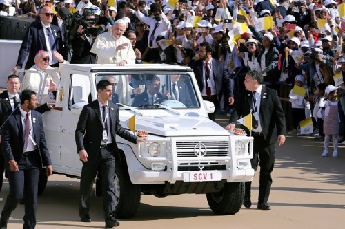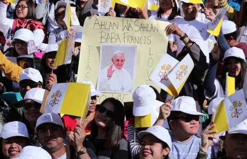 بابا الفاتيكان يصل ملعب مدينة زايد الرياضي لإحياء القداس (صور)