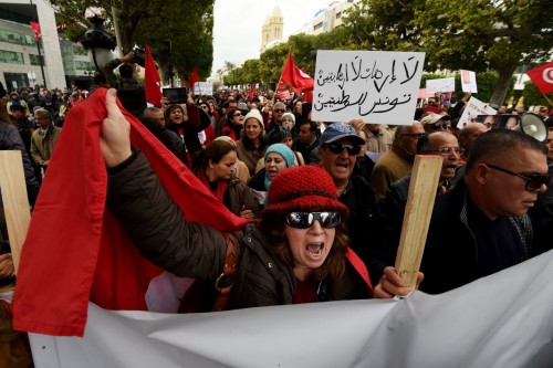 وفي ساحة القصبة حيث يقع مبنى رئاسة الوزراء ووزارة المالية ووزارة الدفاع، رفع آلاف المدرسين شعارات ضد الحكومة التونسية، مطالبين بتحسين أوضاعهم المادية.