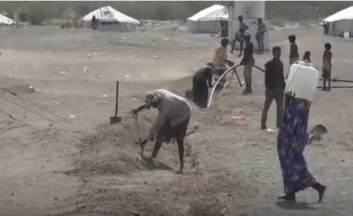 الهلال الإماراتي ينفذ مشروع إيصال مياه الشرب لمخيمات النازحين في الخوخة (فيديو)