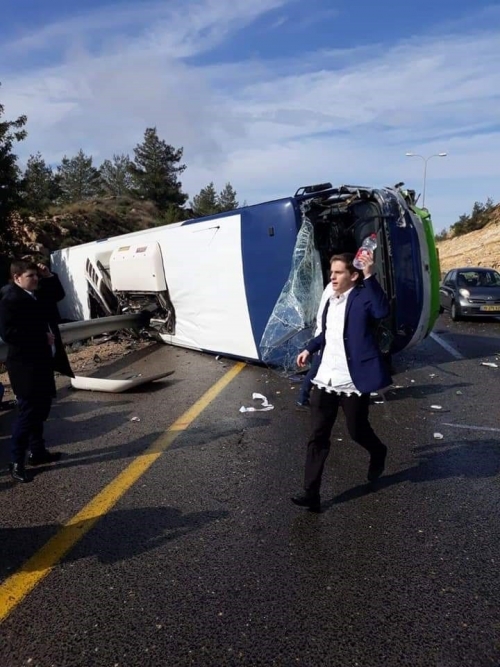 وبحسب القناة 13 الإسرائيلية، فإن ”حادثة انقلاب الحافلة على الطريق 443، أدت إلى مقتل شخصين وإصابة 8 آخرين بجراح خطيرة“.
