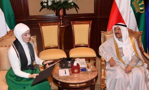 أمير الكويت يستقبل محاربة السرطان شيماء العيدي .. صور