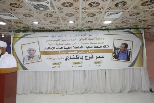 أقيم في مديرية المكلا بحضرموت اليوم الأربعاء، حفل تأبين لـ عمر فرج باظفاري، وسط حضور عدد من القيادات السياسية والعسكرية.