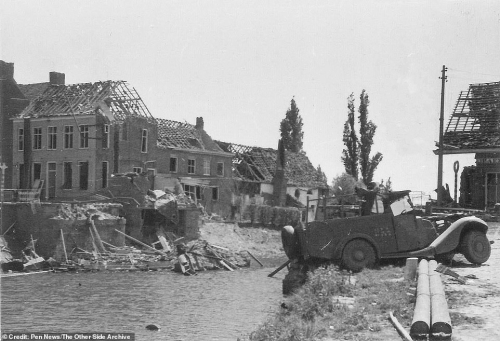 ونقلت عن جامع الصور قوله: ”تظهر الصور مقبرة ضخمة للسيارات والعربات العسكرية المدمرة التابعة لقوات الحلفاء بعد انسحابها من المدينة، كما تظهر جنودًا ألمانًا وهم يقفون قرب الدبابات الفرنسية لالتقاط الصور بعد أن تركها الفرنسيون“.