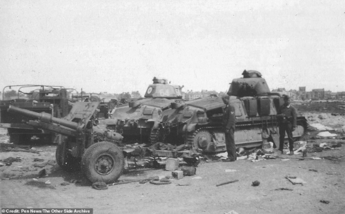 وأظهرت الصور، عشرات المركبات والدبابات المدمرة، بعد احتلال الجيش الألماني النازي آنذاك لفرنسا وهجومهم على مدينة دنكرك عام 1940.