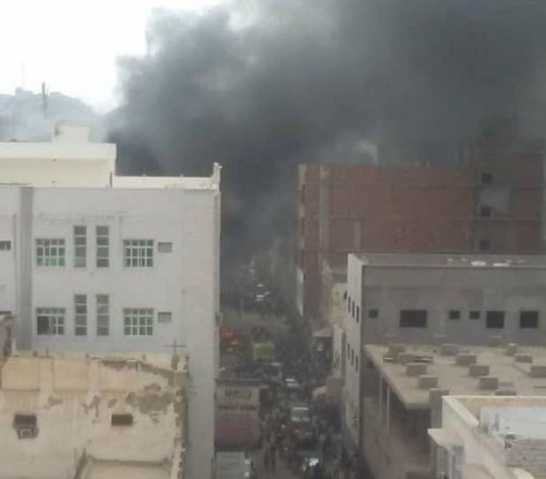 نشب حريق هائل بعمارة سكنية بمدينة كريتر بالعاصمة عدن صباح اليوم الأحد .