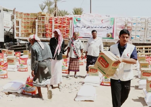 الهلال الإماراتي يوزع 2800 سلة غذائية بمحافظة شبوة (صور)
