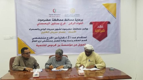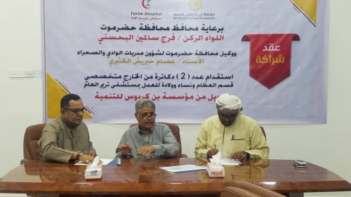 ولفت إلى أن توقيع الشراكة بمستشفى تريم العام جاء لاستقدام طبيبين متخصصين بالنساء والولادة بتكلفة أجمالية بلغت 48 ألف دولار أمريكي.