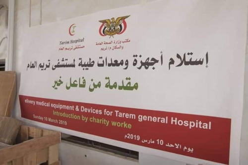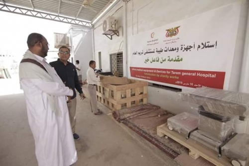 بالصور.. مستشفى تريم يتسلم شحنة معدات وأجهزة طبية