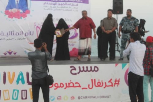 وفي ختام الفعالية التي شهدت فقرات فنية ومسابقات عدة ، قام مستشار محافظ حضرموت محمد عبدالله الحامد والمدير التنفيذي لمؤسسة الأمل مريم العيدروس بتكريم الأمهات اللاتي فزن بمسابقة الأم المثالية للعام 2018م وهن :