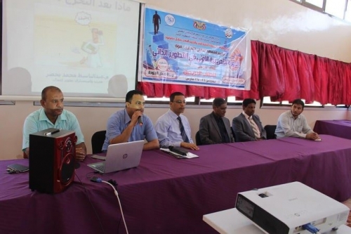 وكتب البحسني، في تغريدة له عبر موقع التواصل الاجتماعي، تويتر، تابعها المشهد العربي: "جانب من فعاليات الدورة التدريبية الأولى للتطوير الذاتي بالمعهد التقني التجاري بفوة لطلاب المعهد الخريجين".