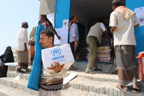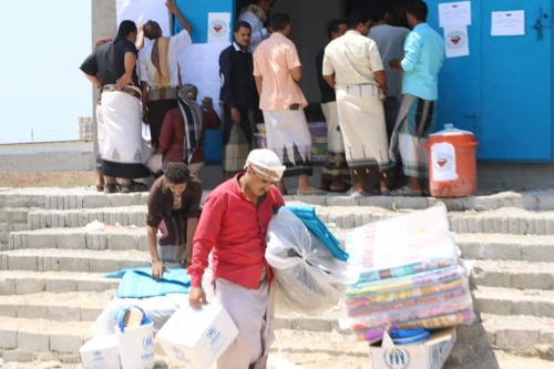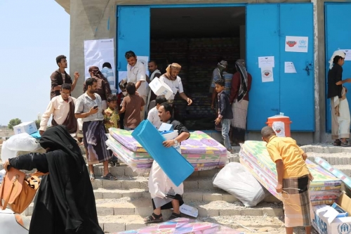 توزيع مساعدات إيوائية على النازحين بمدينة المكلا