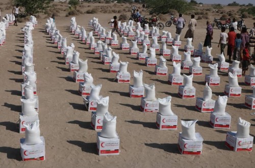 سيّرت هيئة الهلال الأحمر الإماراتي قافلة مساعدات تحمل 80 طناً من المواد الغذائية المتكاملة لأهالي منطقتي "النامسة" و"دير عبدالله و الحوارث والقازة" في مديرية الدريهمي بالساحل الغربي لليمن.