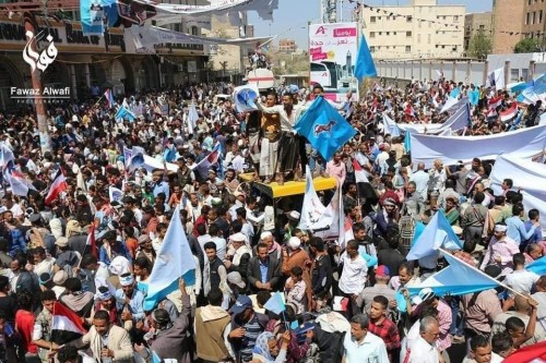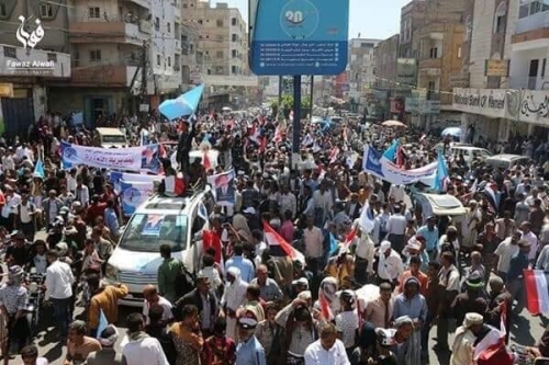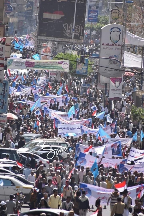وجابت أعداد كبيرة من أنصار الحزب، شوارع تعز بلافتات وهتافات متعددة.