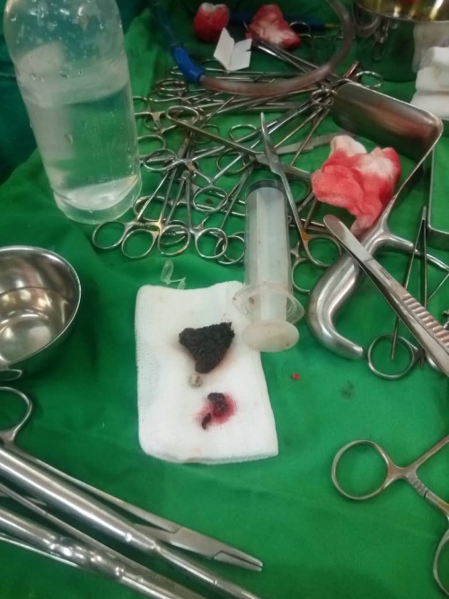وأكد الدكتور الجراح حيد الماتري، أن هذه العملية تعد عملية كبرى ومعقدة، وليست باليسيرة، مشيرا إلى أنها المرة الأولى التي يتم فيها استخراج حصوة من مريض بهذا الحجم.