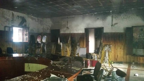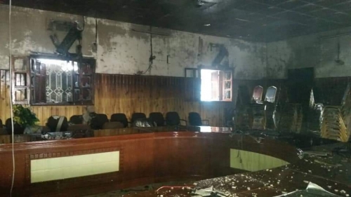 حريق بقاعة ديوان مديرية سيئون.. ولجنة للتحقيق في الواقعة (صور)