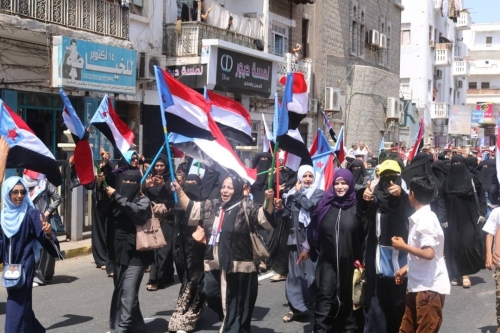 وجابت المتظاهرات الشارع الرئيسي في مديرية المعلا، تضامناً مع أبطال المقاومة الجنوبية في مختلف جبهات القتال بالجنوب لصد العدوان الحوثي الغاشم على أرض الجنوب .