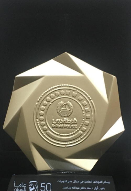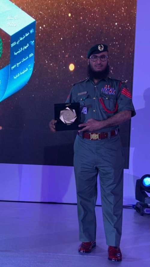 ونشر الإعلامي صور تكريم الرقيب أول سند بن نجيل من أبناء عدن من قبل قائد عام شرطة دبي بوسام أفضل قائد دورية في العام .