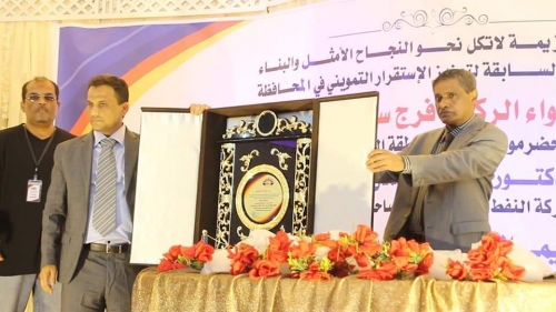 بدوره كرم محافظ حضرموت اللواء الركن فرج سالمين البحسني، رواد شركة النفط اليمنية فرع ساحل حضرموت ومدراء الإدارات والعاملين بالشركة والجهات التي أسهمت في تخفيف حدة الأزمات التي مرت بها المحافظة خلال السنوات الماضية.